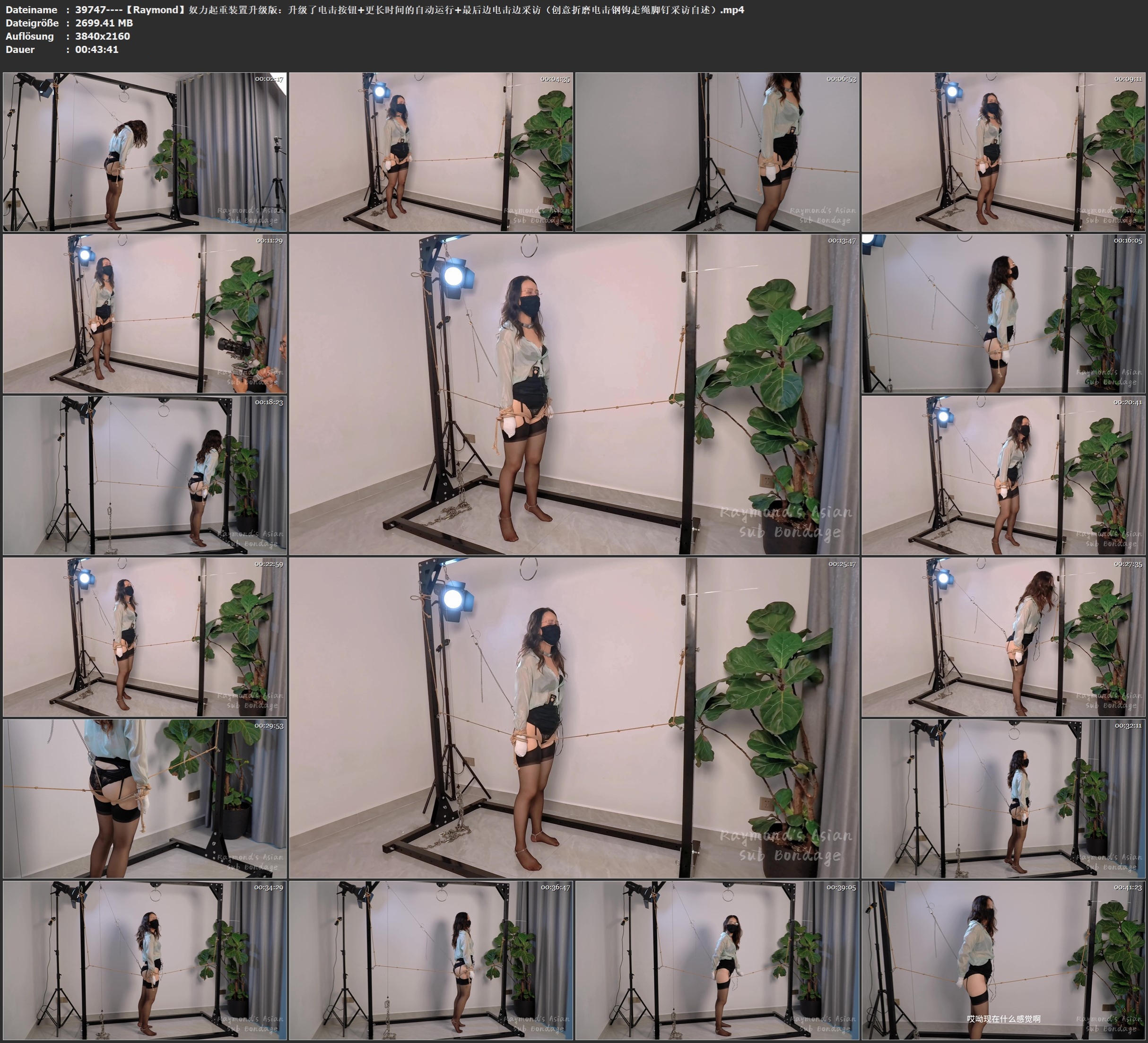 【会员寻片】【Raymond】奴力起重装置升级版:升级了电击按钮+更长时间的自动运行+最后边电击边采访(创意折磨/电击/钢钩/走绳/脚钉/采访自述/) 原版 2025-10-02 绳艺视频 图片预览 资源下载下载价格3 K币VIP免费升级VIP点击检测网盘有效后购买统一解压密码:90kb.top 古老资源请点击立刻下载查看解压密 Android解压失败可以参考 如遇资源失效请反馈!请下方评论留言! 0 Raymond原创